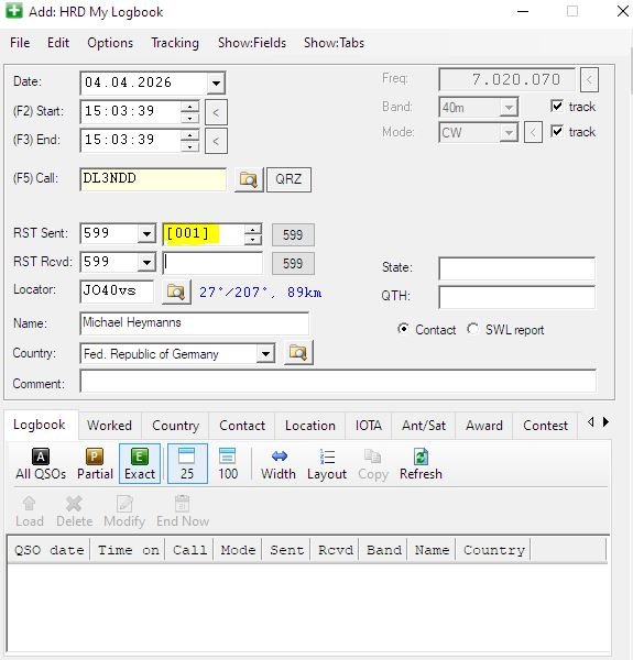 HRD Logbuch Ham Radio Deluxe 5.xx Contestbetrieb